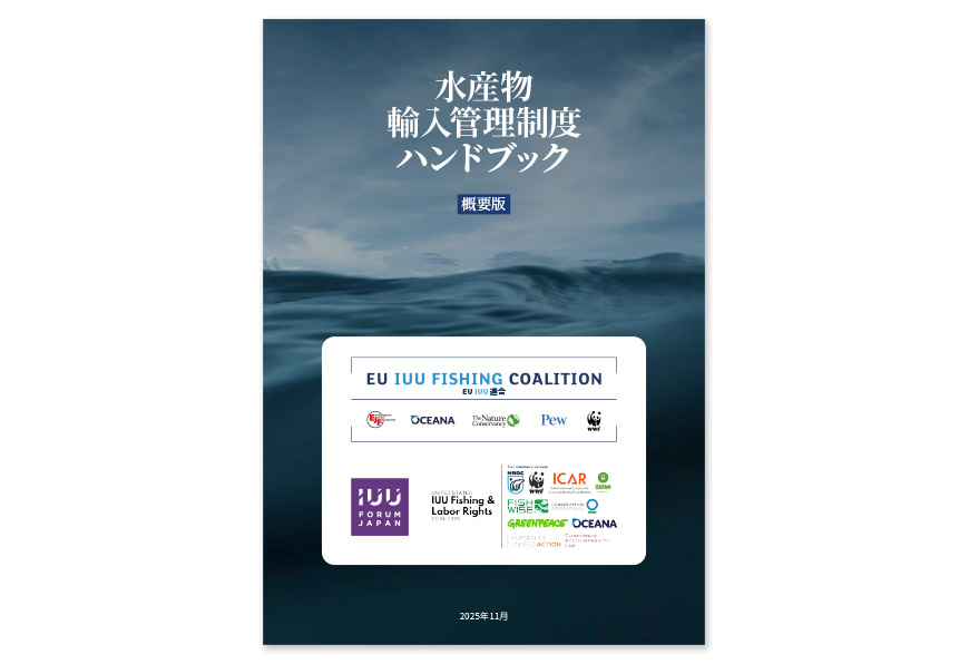 IUUフォーラムジャパンが執筆協力した『The Fisheries Import Control Scheme Handbook』の概要版の日本語訳が完成しました。邦題は『水産物輸入管理制度 概要版』です。日本では外為法、流通適正化法などのもと、主要な輸入水産物の一部を対象とした輸入管理制度が既に運用されていますが、今後どういった強化・改善が必要なのか、他国の制度と足並みが揃っていないとどのような問題が出てくるのか、制度未導入の国々とどのような連携をする必要があるのかといったポイントを本書ではサッと知ることができます。ぜひご覧ください。